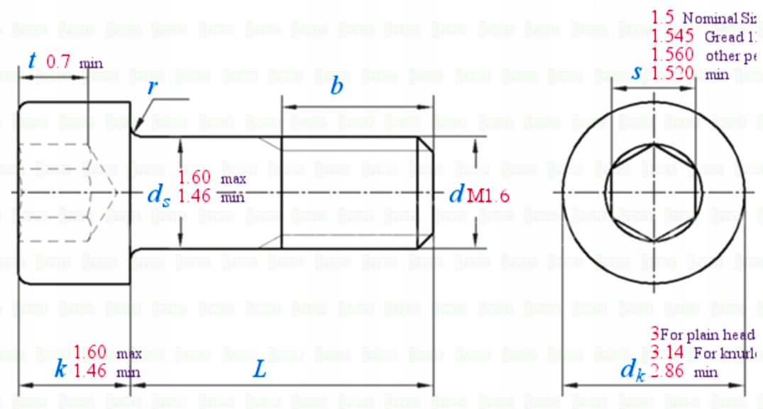 Średnica gwintu d - M1,6
