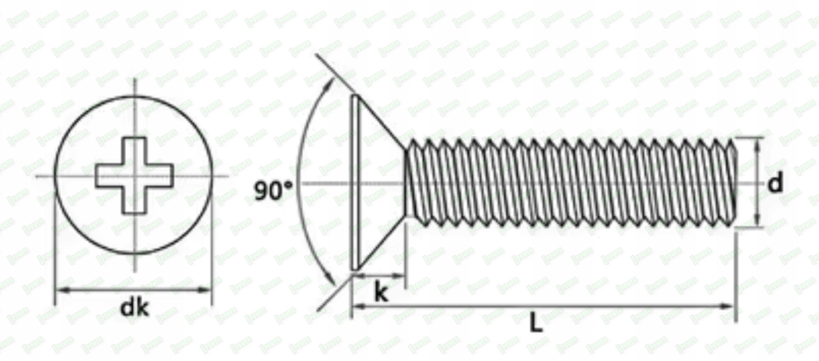 Średnica łba dk - 3 mm