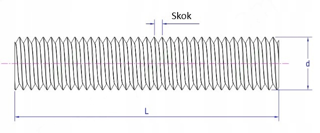 Gwint na całej długości trzpienia