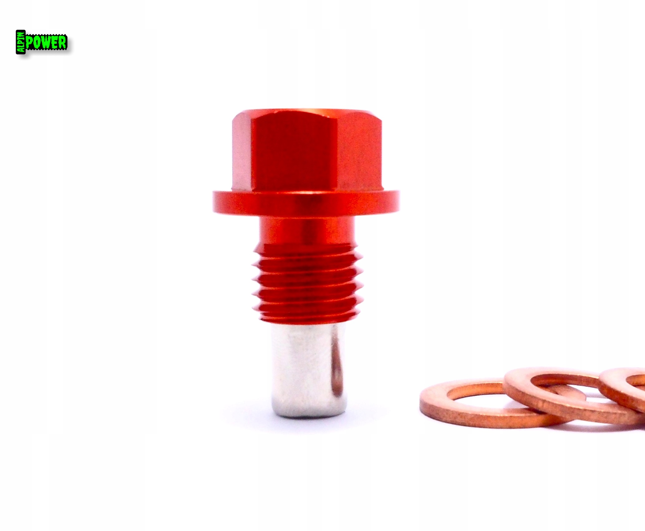 MAGNETYCZNY KOREK SPUSTOWY OLEJU M12X1,75 ALUMINIOWY 6061 CZERWONY