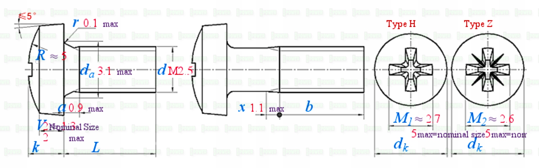 Średnica gwintu: M2,5 skok gwintu 0,45 mm