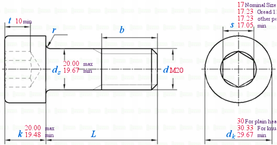 Wysokość łba k - 20 mm