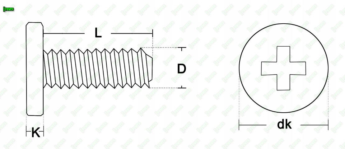 Średnica łba dk - 3,1 mm
