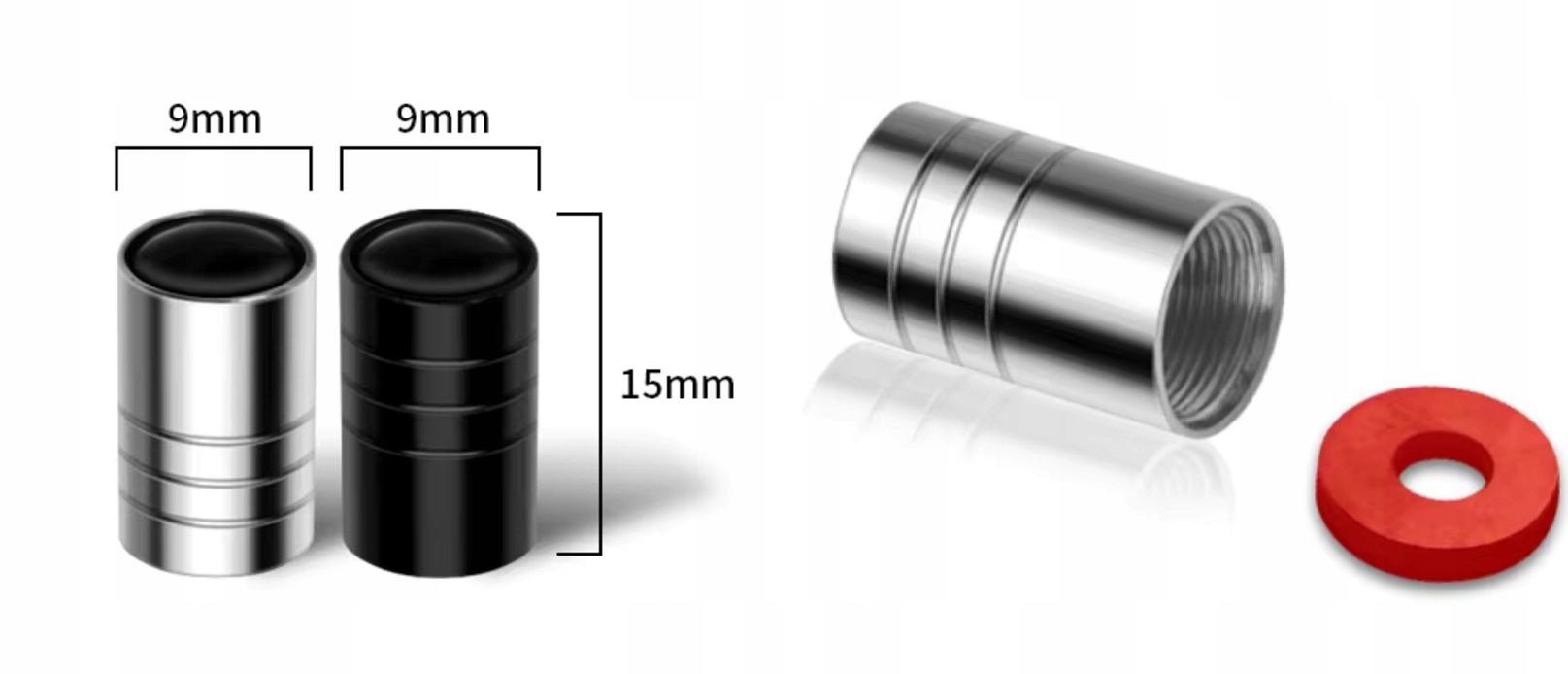 Rodzaj: Nakrętki na wentyle samochodowe z uszczelką tuningowe / zawór Schradera